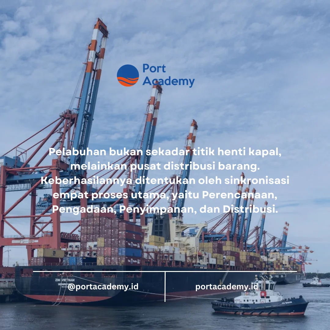 Pelabuhan bukan sekadar titik henti kapal, melainkan pusat distribusi barang. Keberhasilannya ditentukan oleh sinkronisasi empat proses utama, yaitu Perencanaan, Pengadaan, Penyimpanan, dan Distribusi.
